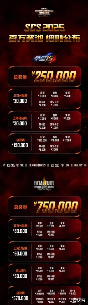 而到了今年,SNK决定趁热打铁,一举将SCS办成更为重量级的,持续性的国际T1赛事——全新升级的SCS 2025拥有《拳皇15》与SNK新作《饿狼传说:群狼之城》两大项目,总奖金池达到了100万人民币之多,这个数额已经超过了大部分国际主流T1赛事,足以吸引大量国内外的顶尖豪强前来争夺。