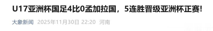 U17亚预赛最后一轮小组赛看点十足:豪取4连胜的中国男足,与同样保持不败的孟加拉国“狭路相逢”。