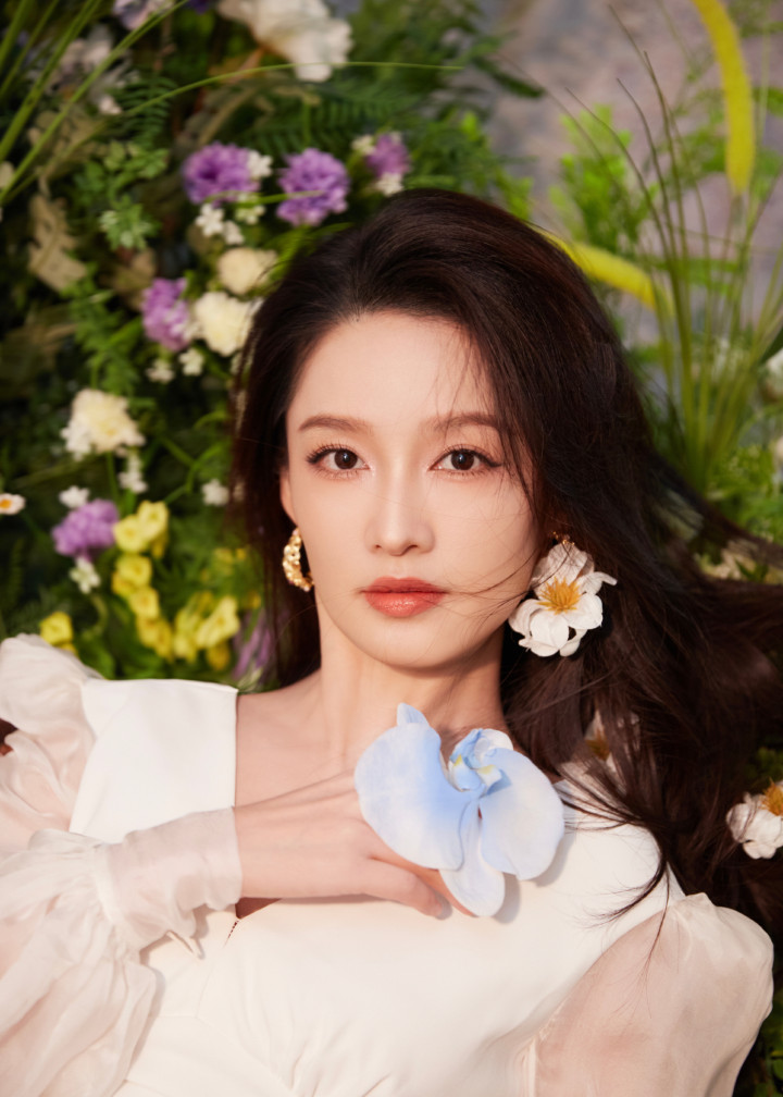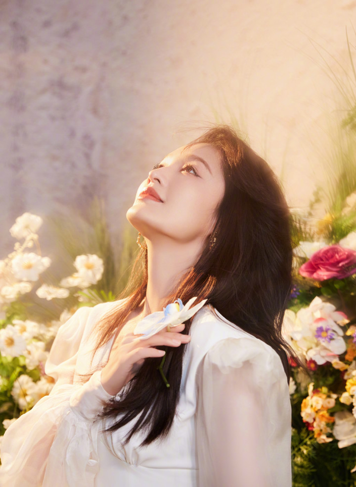 李沁穿白裙陷花海深V微光!发丝拂过锁骨时,春风都屏住呼吸