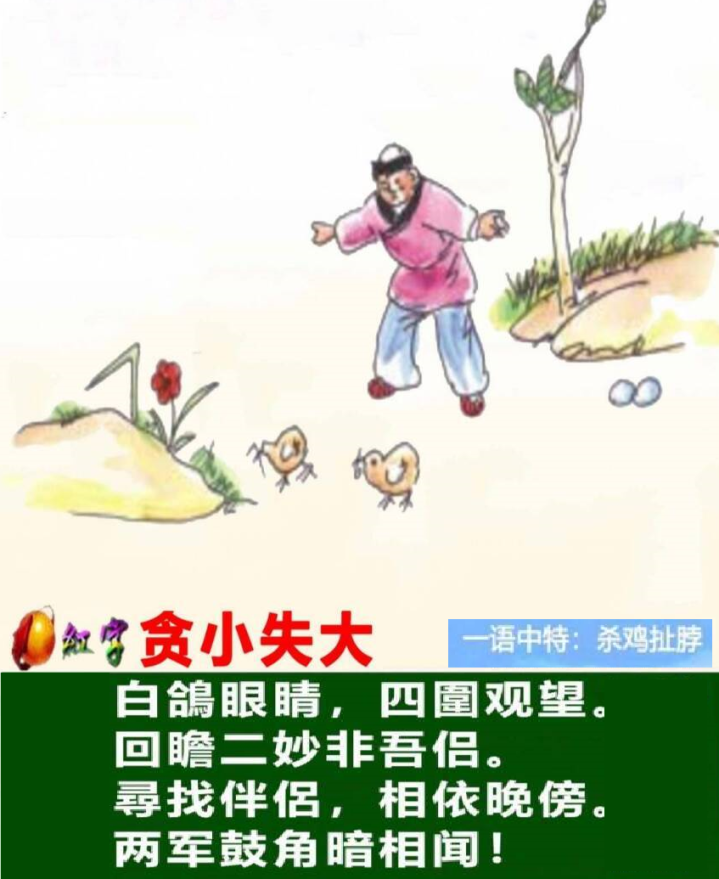 ——五行属子水,阳智变质,为了一粒米粒而丧身,正是“因小失大”的最佳写照。