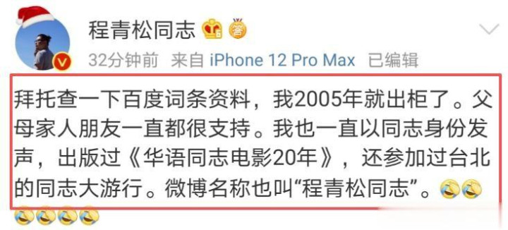 其实他本人思想也是比较前卫的,05年的时候就公开出柜,后来,编剧汪海林还表示,