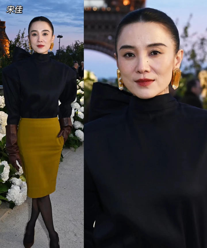 中国女星是宋佳,宋佳一身黑色穿搭,戴着墨镜,别提有多酷了,妥妥的大女主。